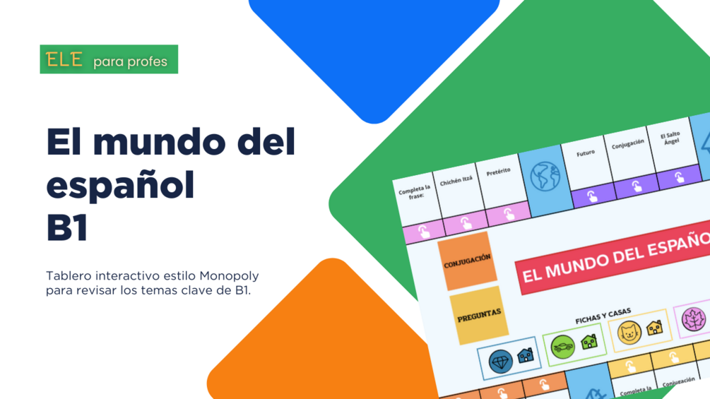 🟣 Juego interactivo B1: Un tablero con preguntas y retos que pondrán a prueba el español de tus estudiantes.